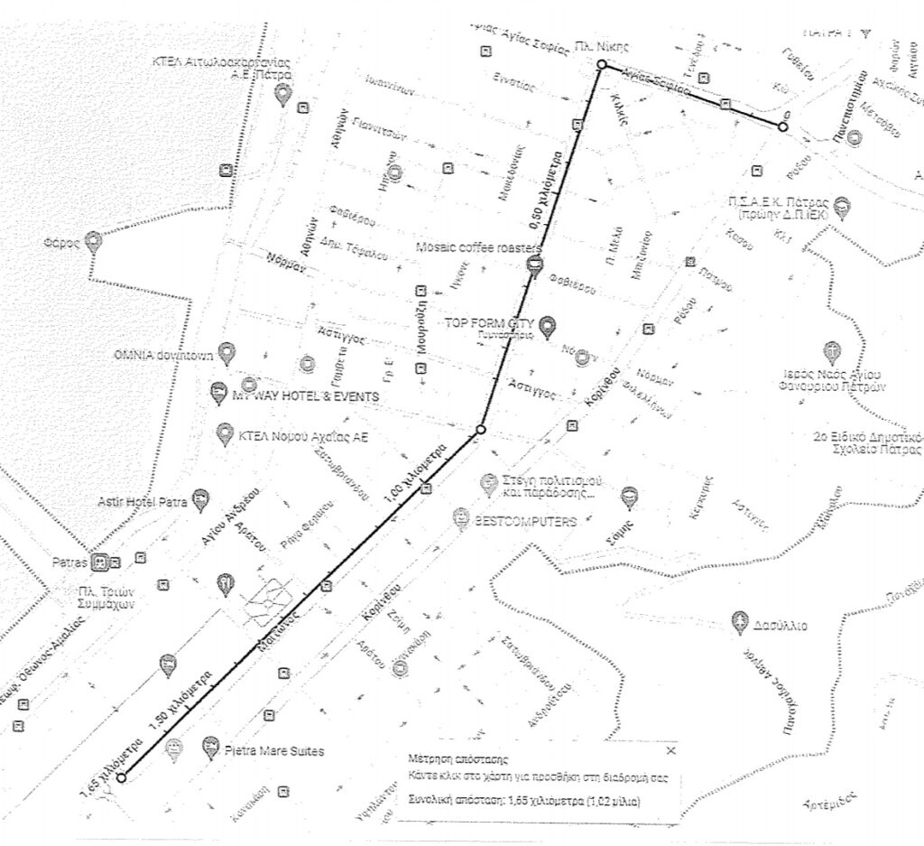 Η διαδρομή της φλόγας στην Πάτρα θα ακολουθήσει την πορεία από Αγίας Σοφίας και Κορίνθου, Αγίας Σοφίας και Κωνσταντινουπόλεως, Μαιζώνος στο νέο Δημαρχείο και μετά την εκδήλωση Μαιζώνος προς Πλατεία Γεωργίου.