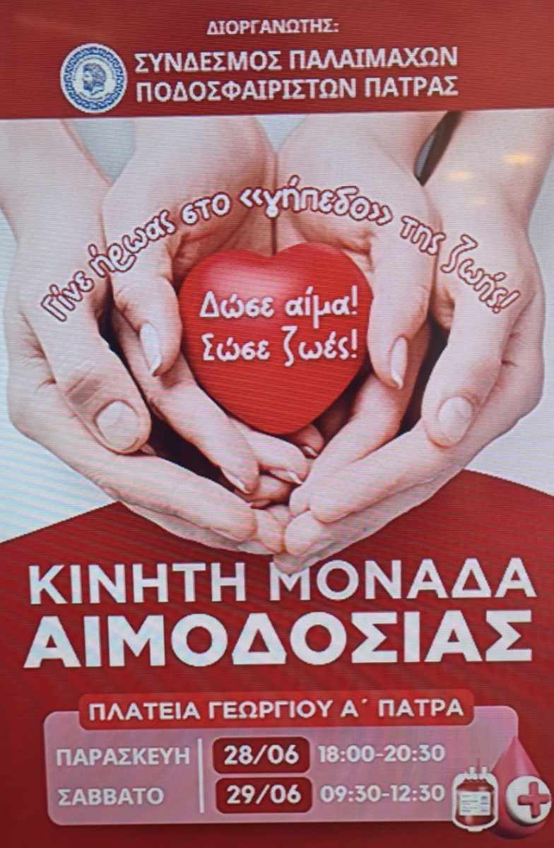 27 Ιουνίου 2024 Δεν επιτρέπεται σχολιασμός στο Αιμοδοσία στην πλ. Γεωργίου – Την Παρασκευή και το Σάββατο Views: 183 Ειδήσεις, Επικαιρότητα, Κοινωνία, Πάτρα/Δυτ. Ελλάδα