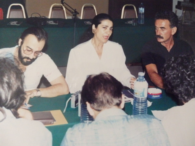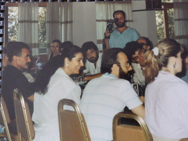 Στις δύο φωτογραφίες από τη συνέντευξη τύπου, με αφορμή το Κινηματογραφικό Αφιέρωμα διακρίνονται επίσης ο Νάσος Νασόπουλος διοικητικός Διευθυντής τότε του ΔΦΠ , ο Ανδρέας Αλεξ. Βρής στέλεχος του Γραφείου Τύπου, η δημοσιογράφος Εύη Χάντζιου και ο Χάρης Καραβαγγέλης, όρθιος με την κάμερα.