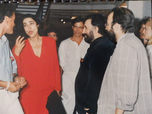 Στην τρίτη φωτογραφία, από τα εγκαίνια της έκθεσης Λαζόγκα, η ηθοποιός, σε εκφραστικό στιγμιότυπο, μαζί με τον ζωγράφο και τους Λάκη Φιλιππάτο, Θάνο Μικρούτσικο, Ανδρέα Αλεξ. Βρή (από το προσωπικό δημοσιογραφικό αρχείο του οποίου το φωτογραφικό υλικό) και την υπεύθυνη Οργανωτικού τομέα του Φεστιβάλ Βίκυ Ζουμή Σταύρου ( μόλις διακρίνεται δεξιά).