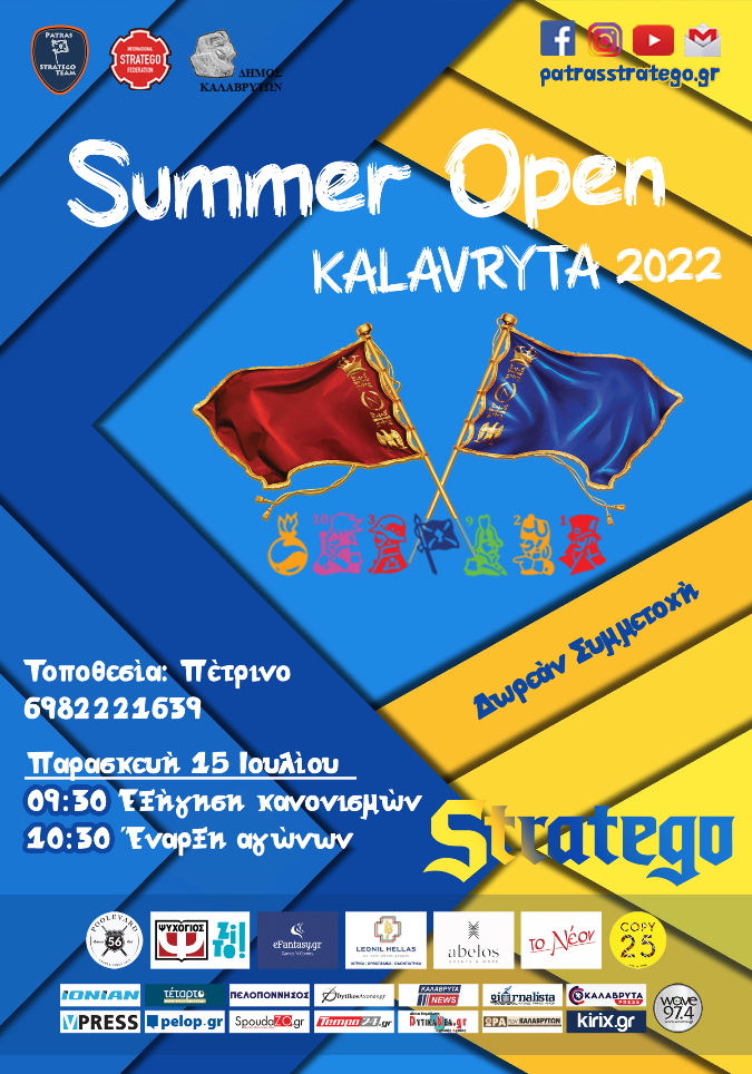 Δηλώσεις συμμετοχής πραγματοποιούνται με επικοινωνία σε κάθε μέσω της Patras Stratego Team και στο 6982221639.