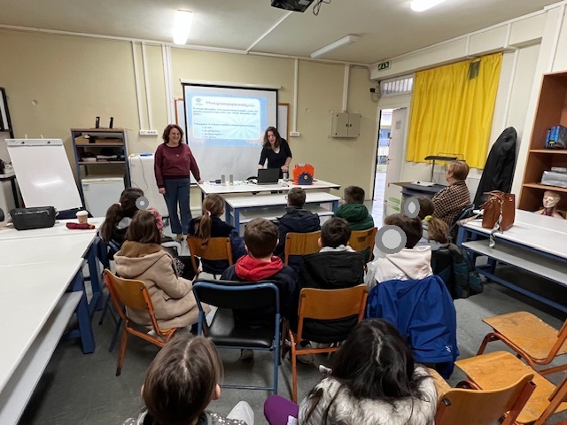 Βέβαια, την επόμενη ημέρα το πρωί πριν την έναρξη των μαθημάτων έγινε διάχυση της αποκτημένης ήδη γνώσης από τους/τις μαθητές/-τριες της Δ τάξης, τη Διευθύντρια κ.Πηνελόπη Φραντζή, τις εκπαιδευτικούς κ.Κατερίνα Συλλαϊδή και κ.Νταίζη Καρούσου στους/στις υπόλοιπους/-ες μαθητές/τριες της σχολικής μονάδας.»
