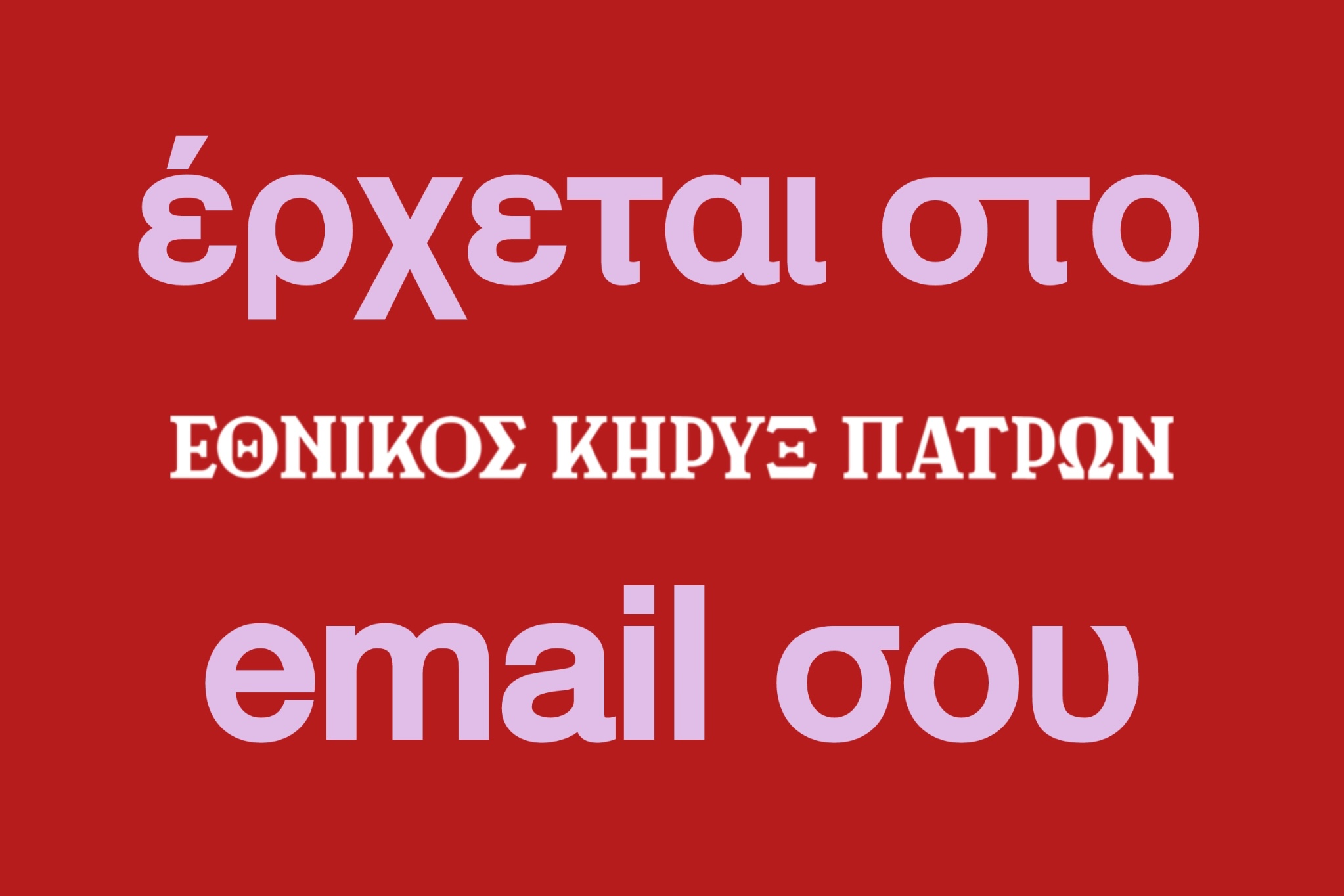 Ο ΕΘΝΙΚΟΣ ΚΗΡΥΞ ΠΑΤΡΩΝ είναι στο email σου!