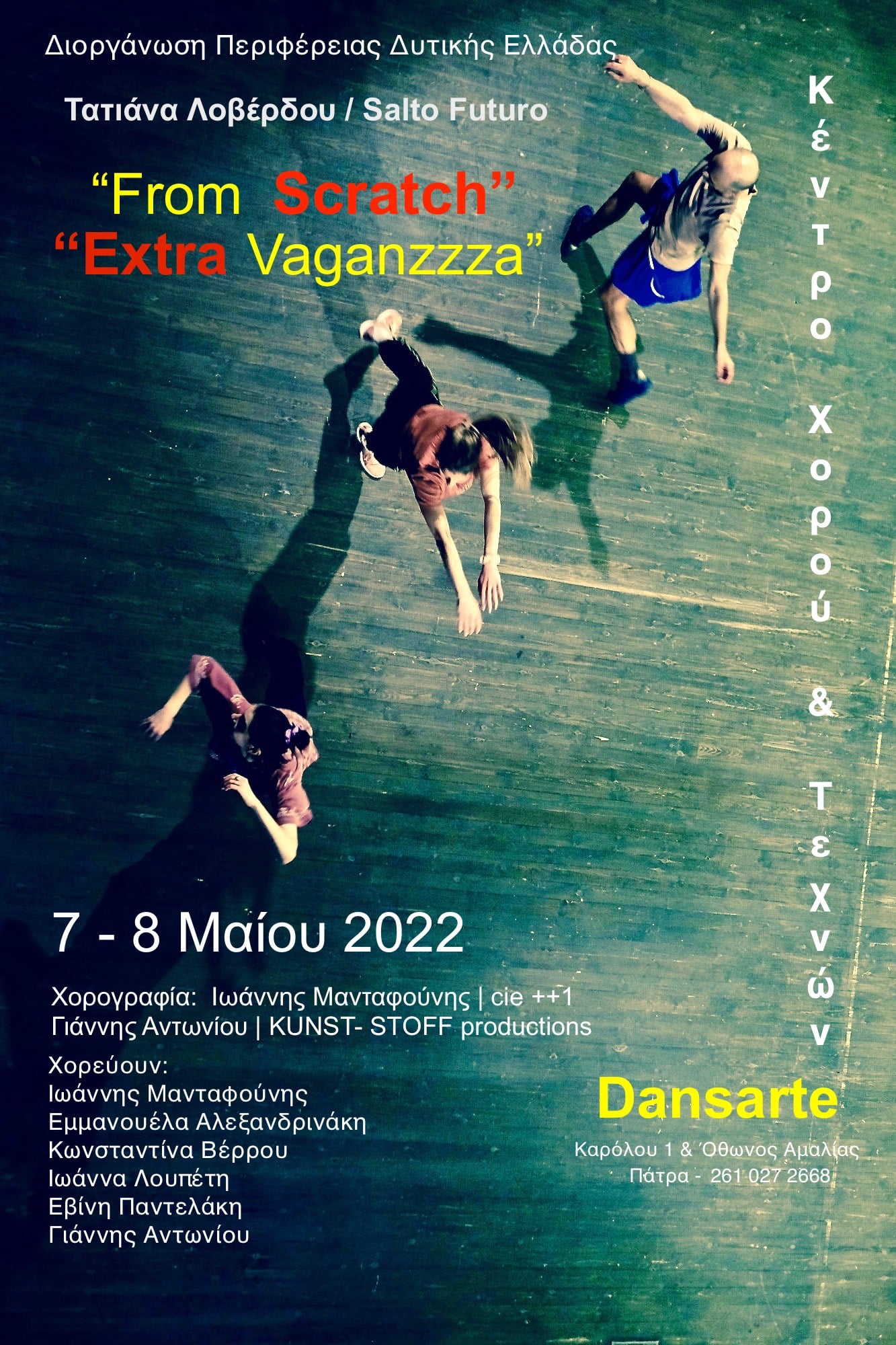 Το Σαββατοκύριακο 7 και 8 Μαΐου Ανώτερη Επαγγελματική Σχολή Χορού της Τατιάνας Λοβέρδου «Dansarte» παρουσιάζει τα έργα των δυο χορογράφων Ιωάννη Μανταφούνη και Γιάννη Αντωνίου “From Scratch και Extra Vaganzzza”, στο Κέντρο Χορού και Τεχνών Dansarte στις 8.30 μμ.