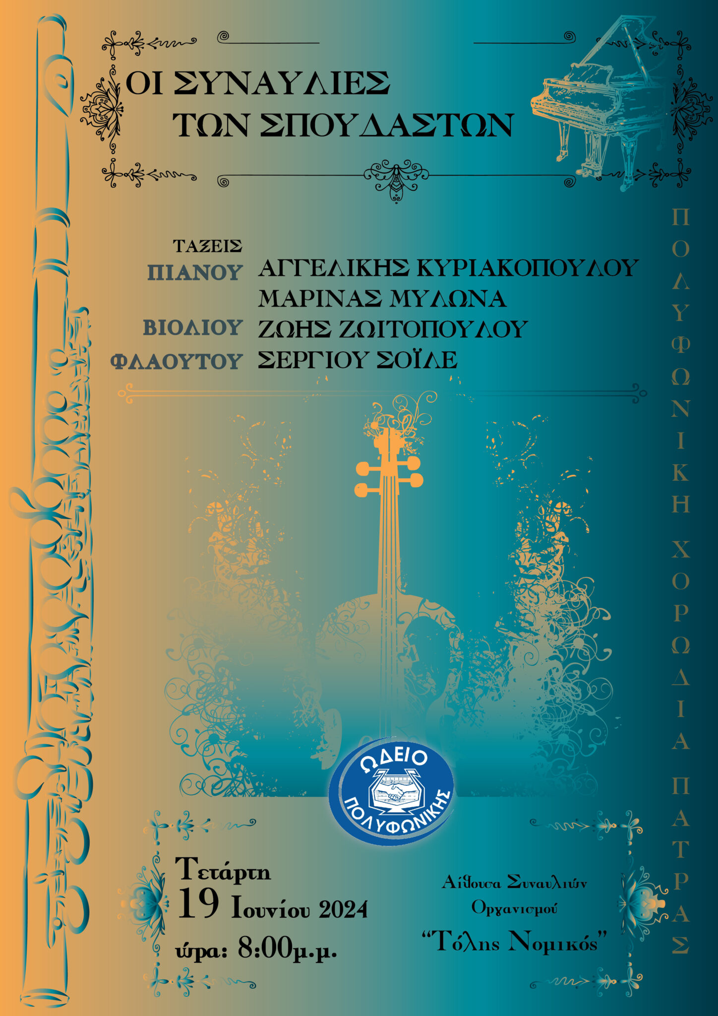 Με εξαιρετική επιτυχία πραγματοποιήθηκαν οι 6η, 7η και 8η συναυλίες του κύκλου «Συναυλίες των σπουδαστών», διαφόρων τάξεων του ΩΔΕΙΟΥ της ΠΟΛΥΦΩΝΙΚΗΣ (Διεύθυνση: Γιώργος Μπουρδόπουλος, Διοικητική Διεύθυνση: Έφη Καββαδία- Ζέρβα).