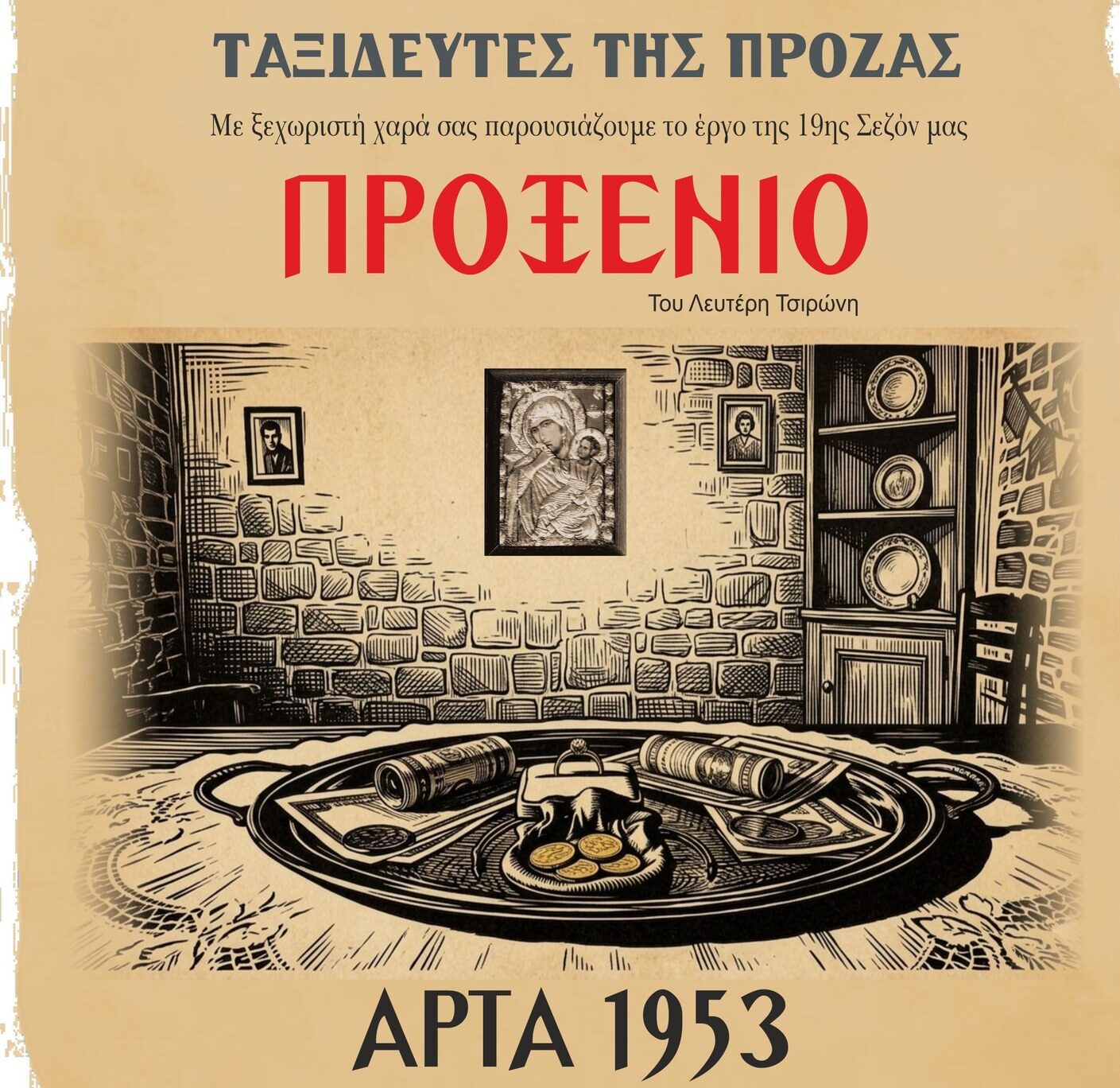 Το έργο βασίζεται σε διήγημα πολυβραβευμένου Ηπειρώτη συγγραφέα και μεταφέρεται στη σκηνή από τη θεατρική ομάδα «Ταξιδευτές της Πρόζας». Η παράσταση αντλεί στοιχεία από την παραδοσιακή κοινωνική ζωή της Ηπείρου, αναδεικνύοντας μέσα από αφηγηματικές εικόνες και χαρακτήρες τη διαδικασία του προξενιού, τις οικογενειακές σχέσεις και τα ήθη της εποχής.